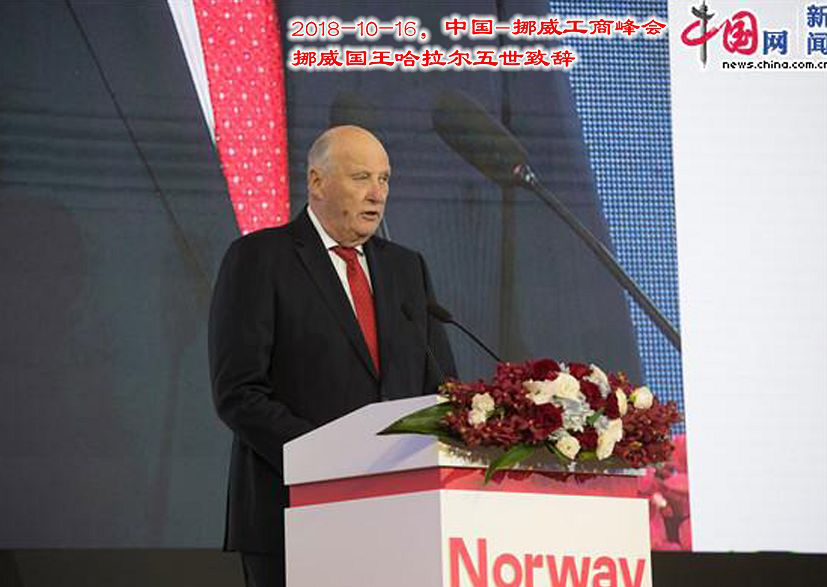 应国家主席习近平邀请,挪威国王哈拉尔五世于10月11日至20日对中国进行国事访问。10月16日,哈拉尔五世和王后宋雅出席了由挪威创新署和中国国际贸易促进委员会共同主办的中国-挪威工商峰会。 此次峰会的主题为"引领可持续开展解决方案",涵盖了智慧城市、海上风电、技术改变驱动创新、石油天然气等重要议题。